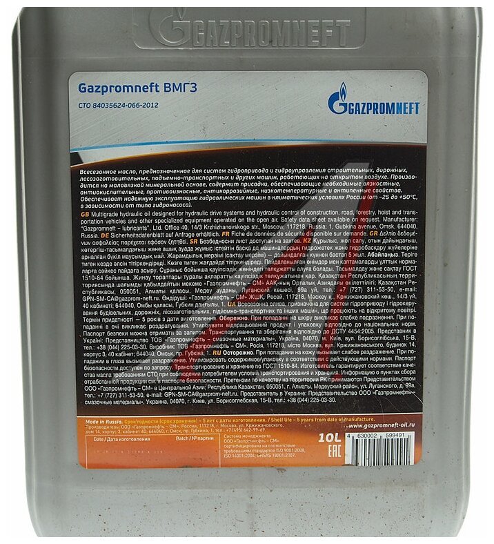 Type: hydraulic oil, vehicle type: special equipment, scope: hydraulic system, composition: semi-synthetic