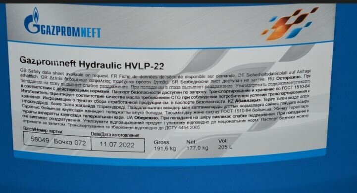 Kinematic viscosity at 40 °С 22 mm2 / s, at negative temperatures -20 °С, 850 mm2 / s IV 152