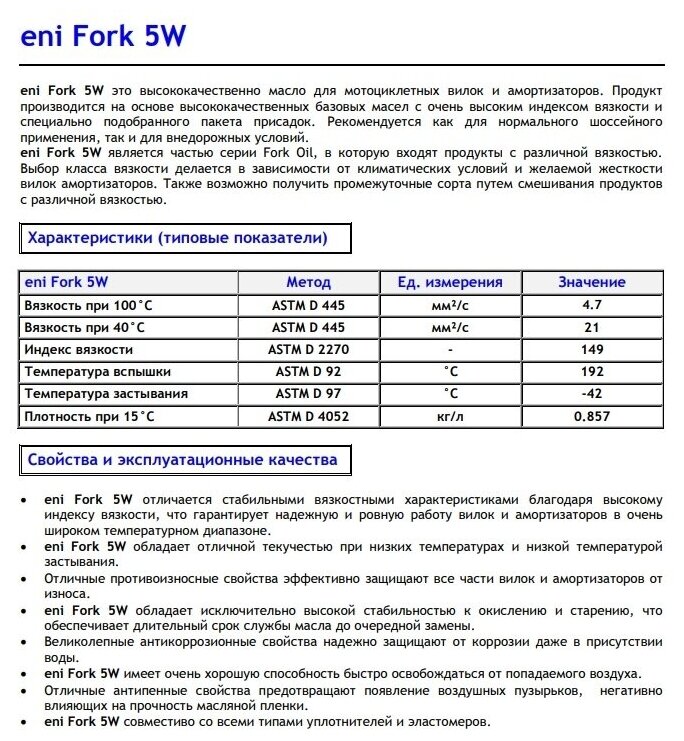 Type: fork oil, vehicle type: motor vehicles, scope: shock absorbers, fork, composition: mineral, viscosity index: 153