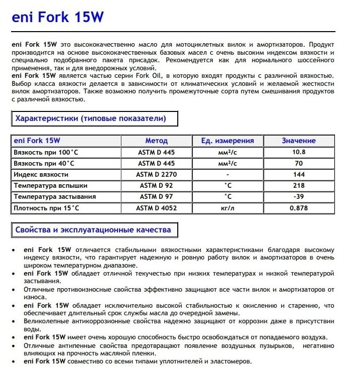 Type: fork oil, vehicle type: motor vehicles, scope: shock absorbers, fork, composition: mineral, viscosity index: 143