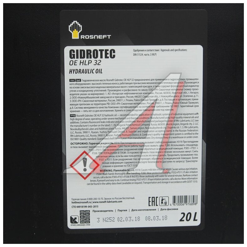 Hydraulic oil Rosneft Gidrotec HLP 32