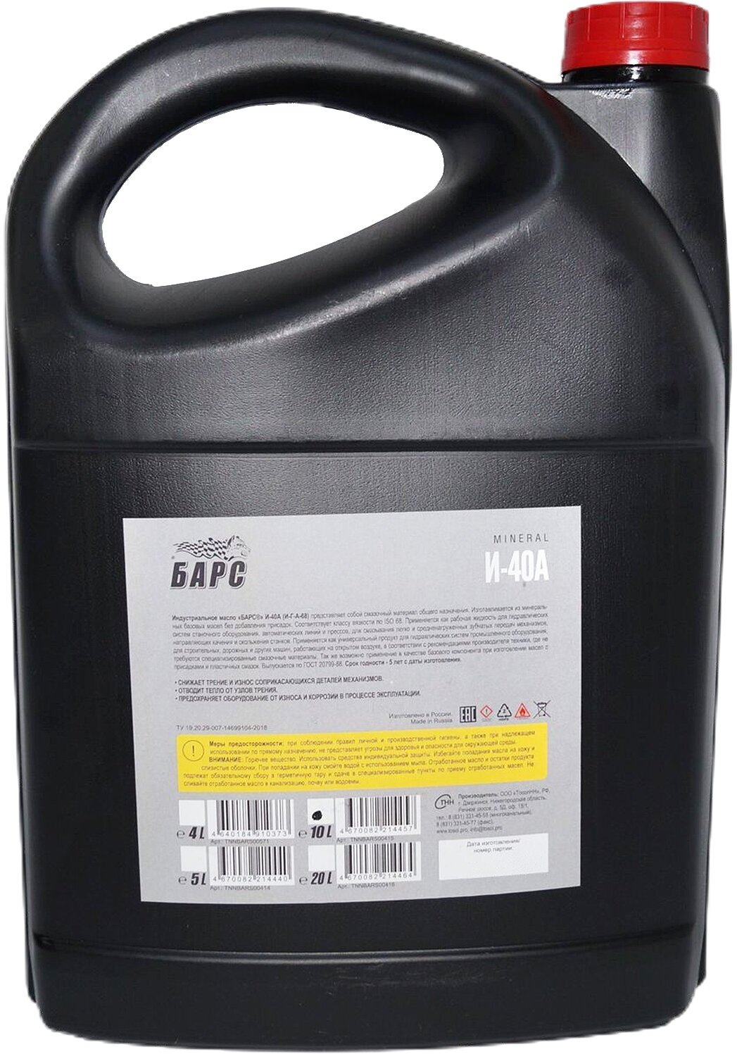Type: industrial oil, composition: mineral