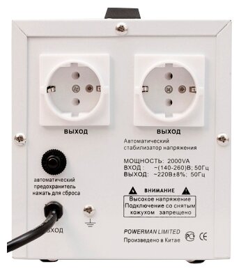 Input voltage type: single-phase, stabilizer type: relay, location: floor, min. input operating voltage: 180 V, max. input operating voltage: 264 V, output sockets with stabilization: 3 pcs., error