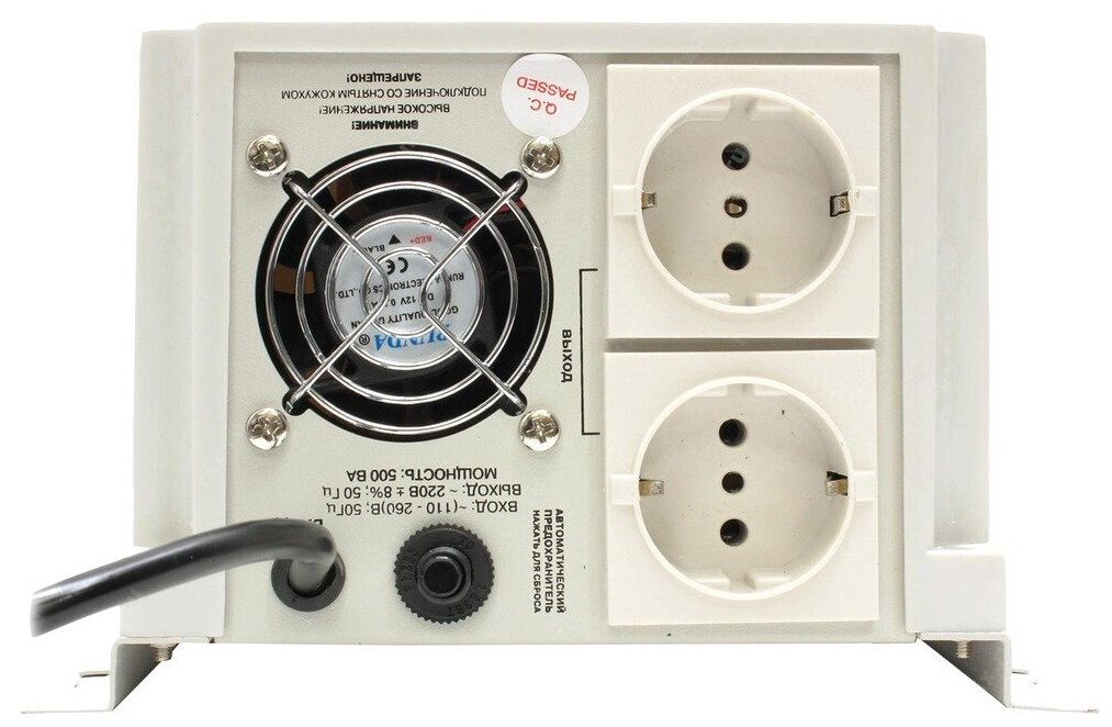 Input voltage type: single-phase, stabilizer type: relay, location: hanging, min. input operating voltage: 90 V, max. input operating voltage: 260 V, output sockets with stabilization: 2 pcs., error: