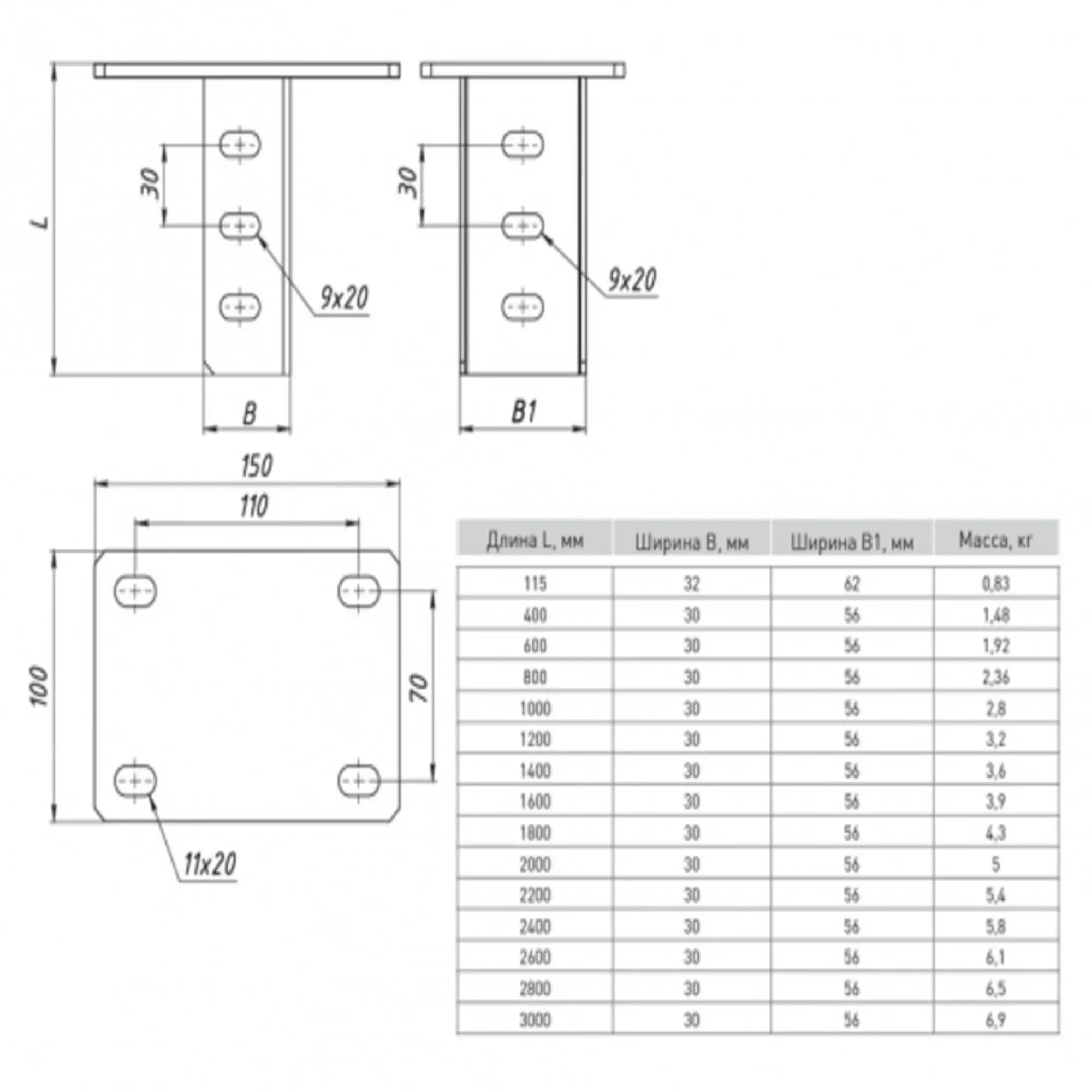 Single ceiling bracket 600mm HDZ EKF kp600,
