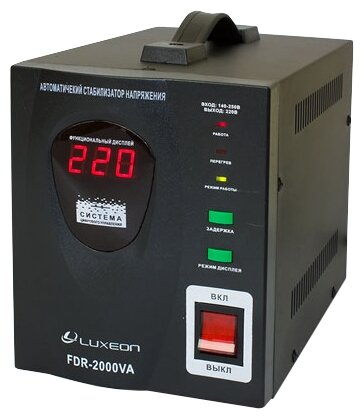 Input voltage type: single-phase, stabilizer type: relay, location: floor, min. input operating voltage: 180 V, max. input operating voltage: 264 V, output sockets with stabilization: 3 pcs., error