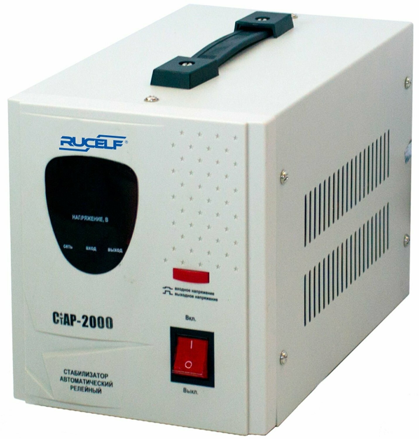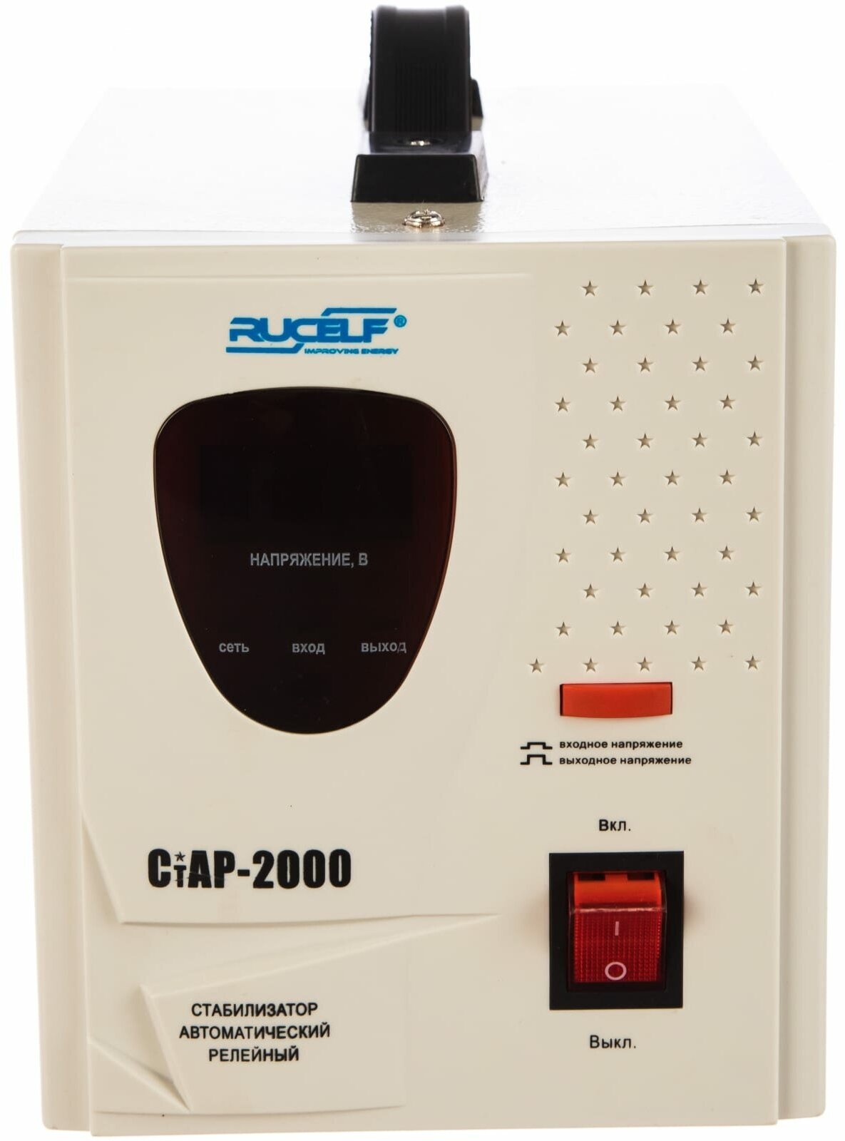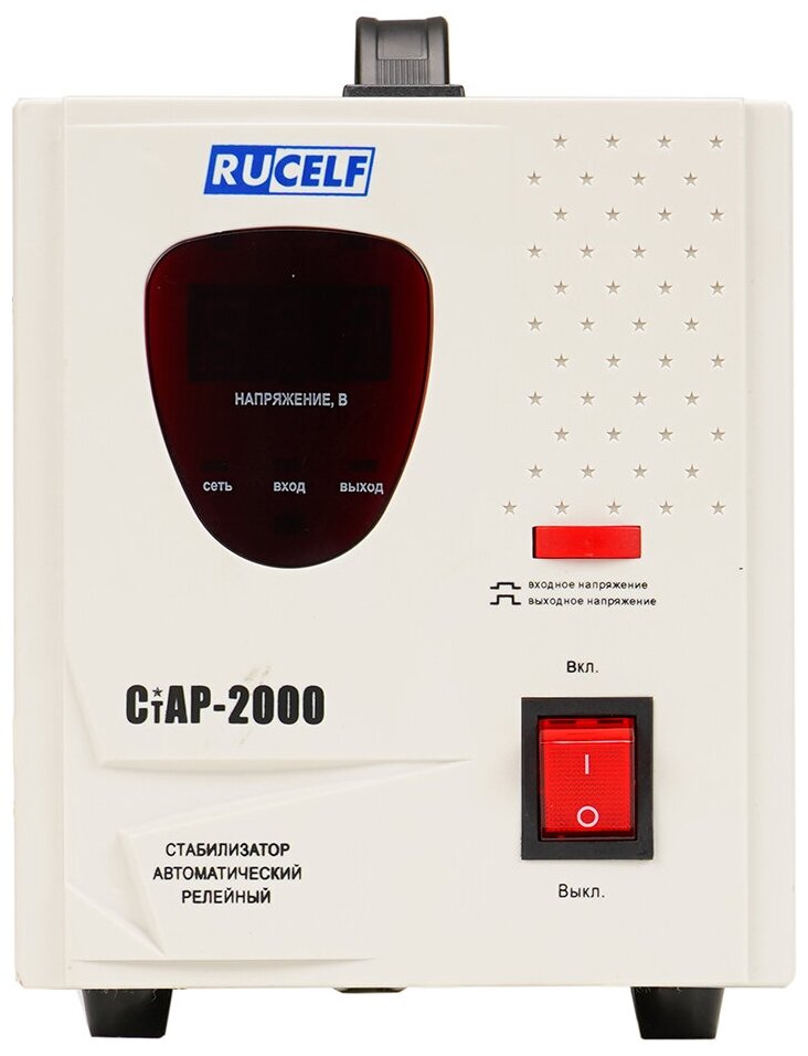 Input voltage type: single-phase, stabilizer type: relay, location: floor, min. input operating voltage: 180 V, max. input operating voltage: 264 V, output sockets with stabilization: 3 pcs., error