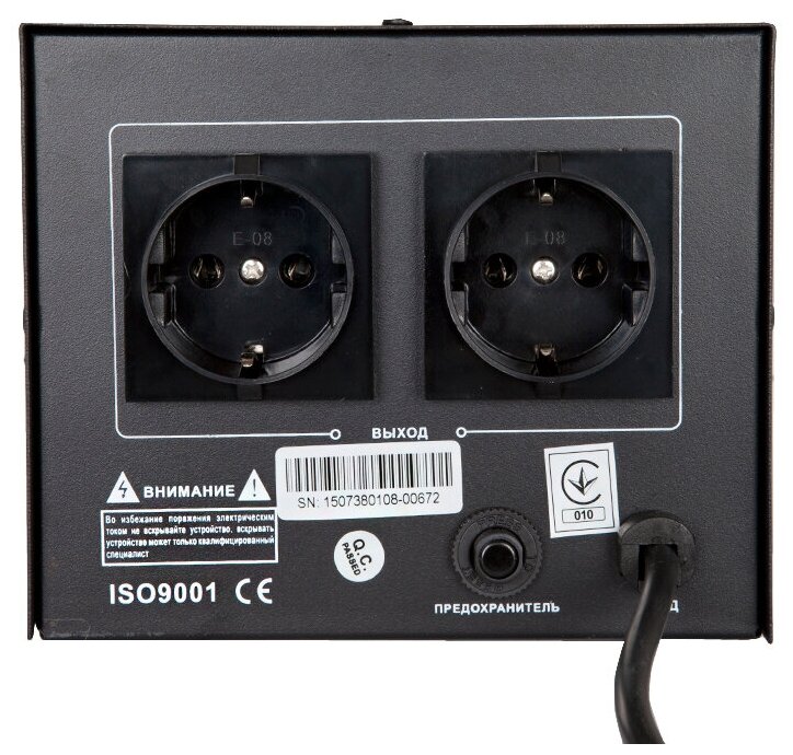 Input voltage type: single-phase, stabilizer type: relay, location: floor, min. input operating voltage: 180 V, max. input operating voltage: 264 V, output sockets with stabilization: 3 pcs., error