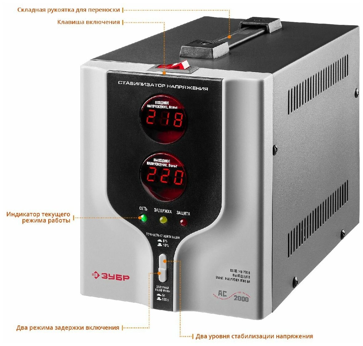 ZUBR 2000 VA, 140-260 V, 2 kW, automatic 59375-2 Professional