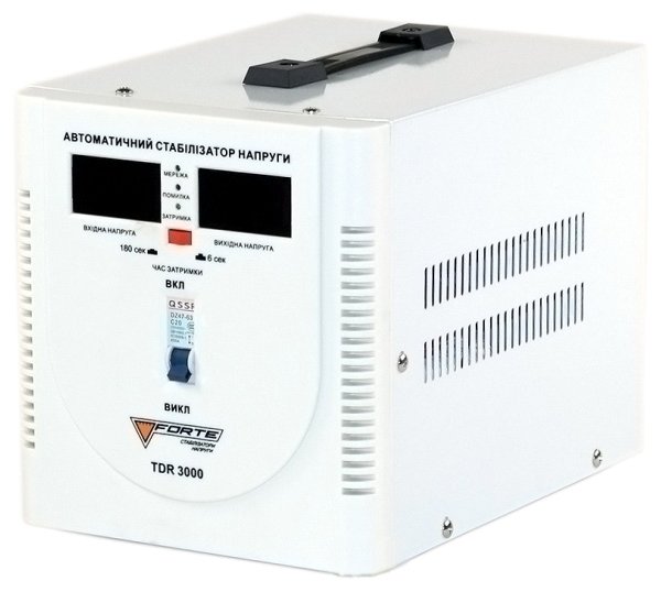 Input voltage type: single-phase, stabilizer type: relay, location: floor, min. input operating voltage: 140 V, max. input operating voltage: 260 V, error: 8%