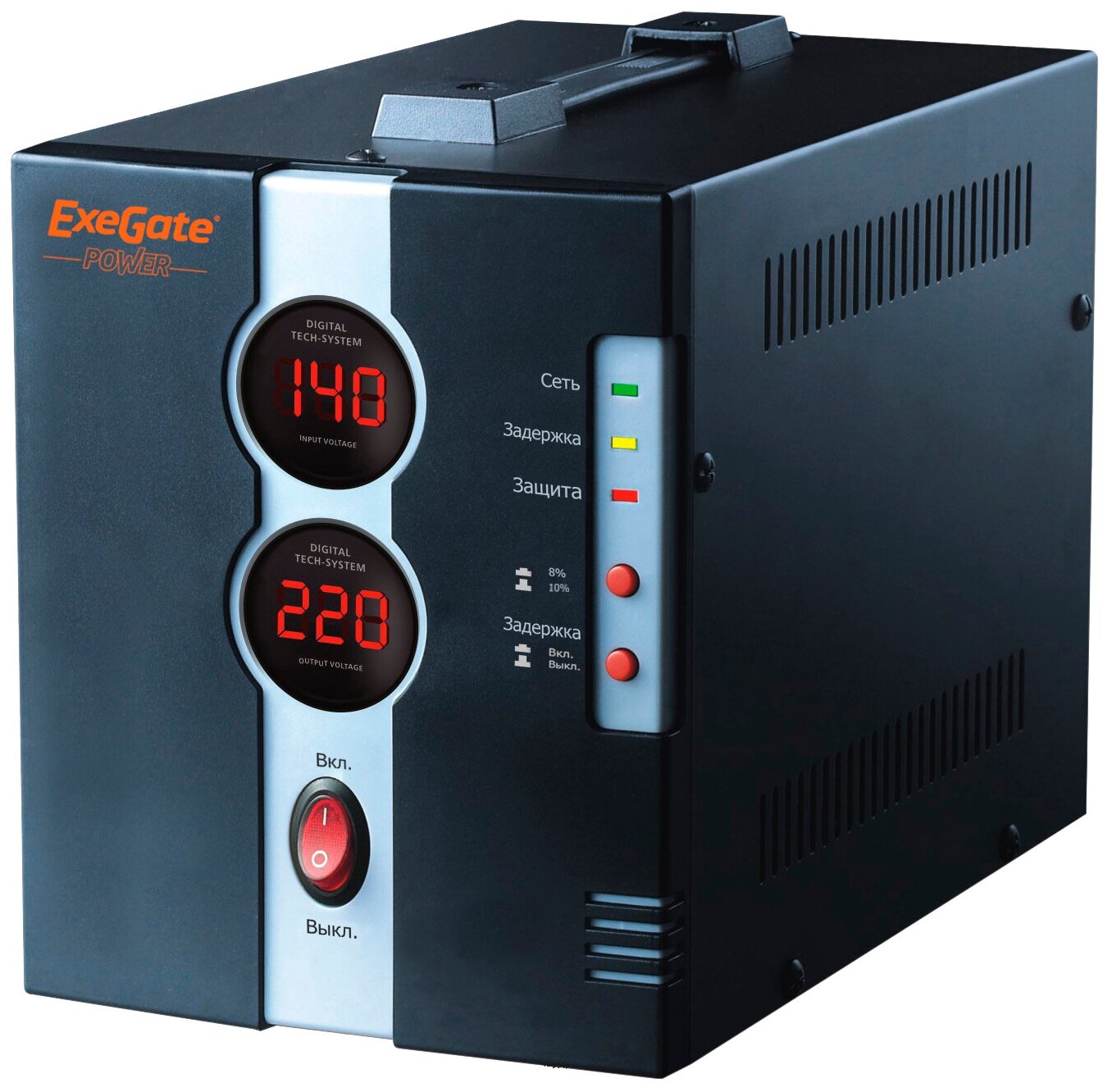 Input voltage type: single-phase, stabilizer type: relay, location: floor, output sockets with stabilization: 1 pc., error: 10%