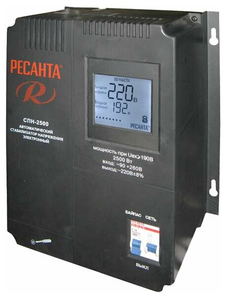 Input voltage type: single-phase, stabilizer type: relay, location: wall-mounted, min. input operating voltage: 90 V, max. input operating voltage: 260 V, error: 8%