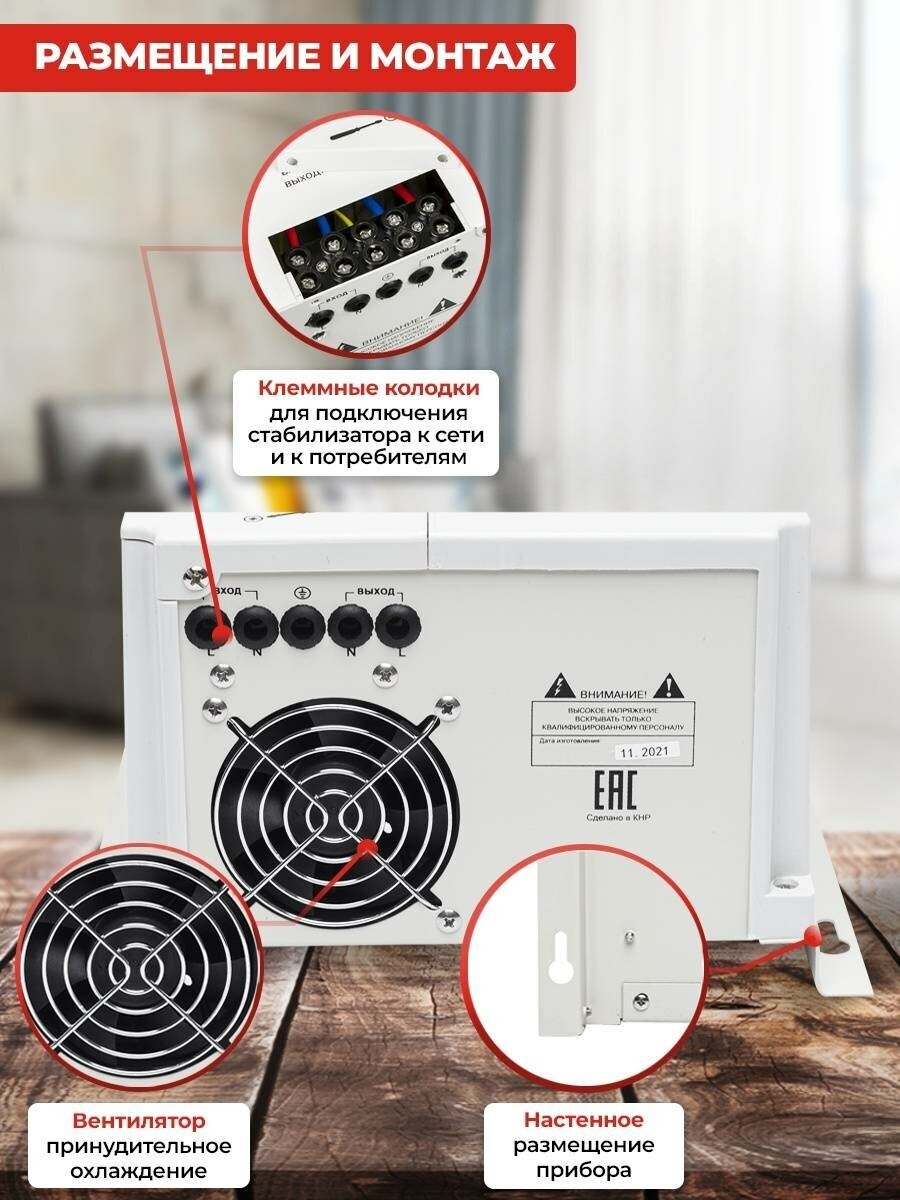 Input voltage type: single-phase, stabilizer type: relay, location: wall-mounted, wall-mounted, min. input operating voltage: 140 V, max. input operating voltage: 260 V, error: 8%