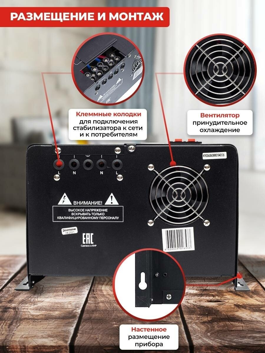 Input voltage type: single-phase, stabilizer type: relay, location: wall-mounted, min. input operating voltage: 90 V, max. input operating voltage: 260 V, error: 8%