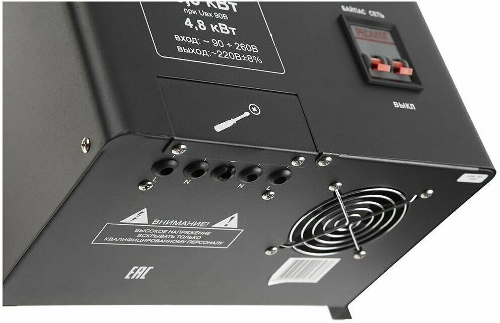 Input voltage type: single-phase, stabilizer type: relay, placement: wall-mounted, universal, min. input operating voltage: 90 V, max. input operating voltage: 260 V, error: 8%