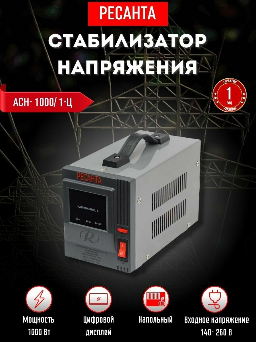 Input voltage type: single-phase, stabilizer type: relay, location: floor, min. input operating voltage: 180 V, max. input operating voltage: 264 V, output sockets with stabilization: 3 pcs., error