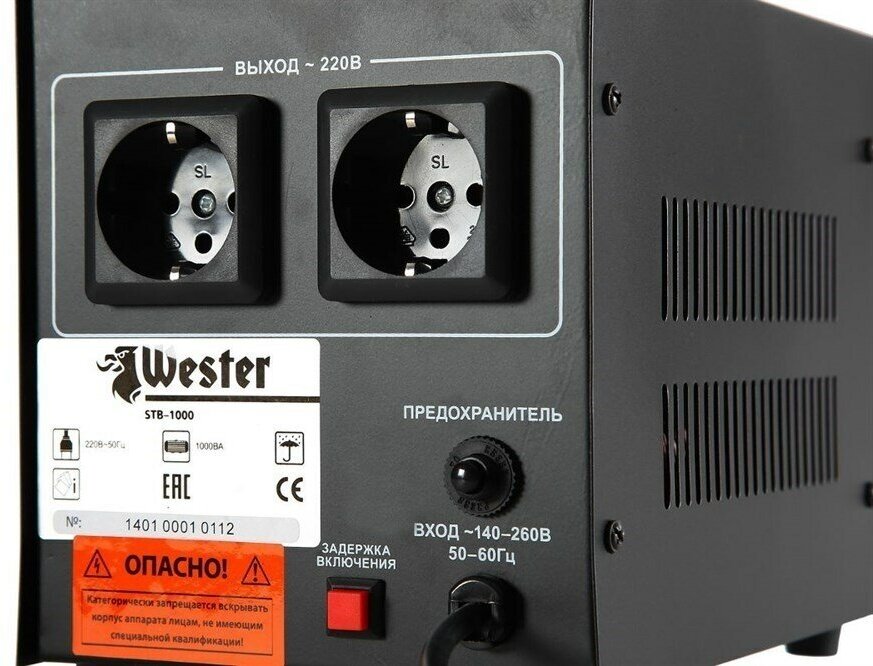 Input voltage type: single-phase, stabilizer type: relay, location: floor, min. input operating voltage: 180 V, max. input operating voltage: 264 V, output sockets with stabilization: 3 pcs., error