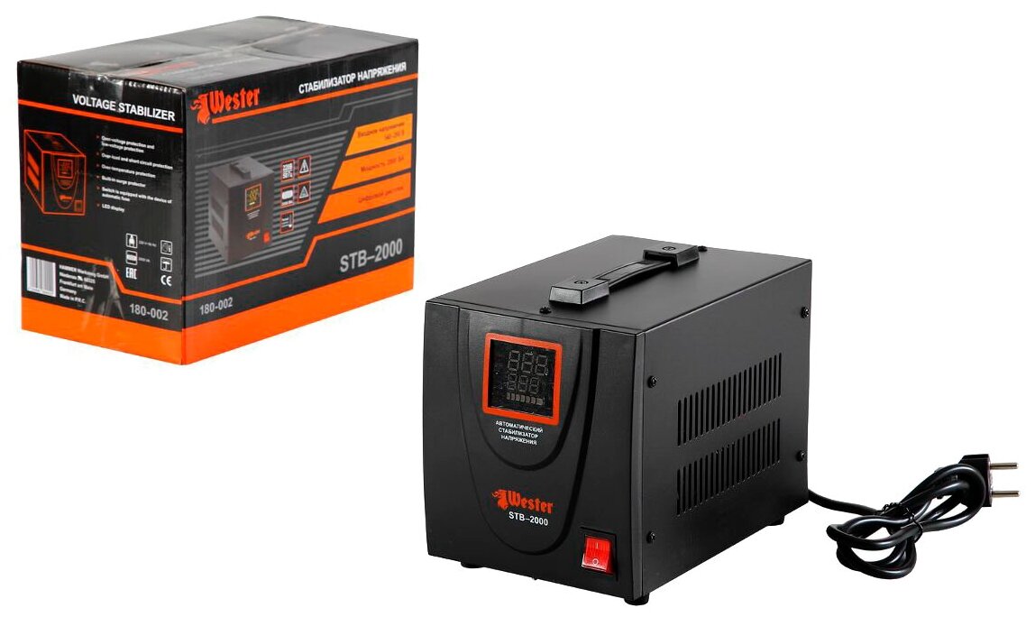 Input voltage type: single-phase, stabilizer type: relay, location: floor, min. input operating voltage: 180 V, max. input operating voltage: 264 V, output sockets with stabilization: 3 pcs., error