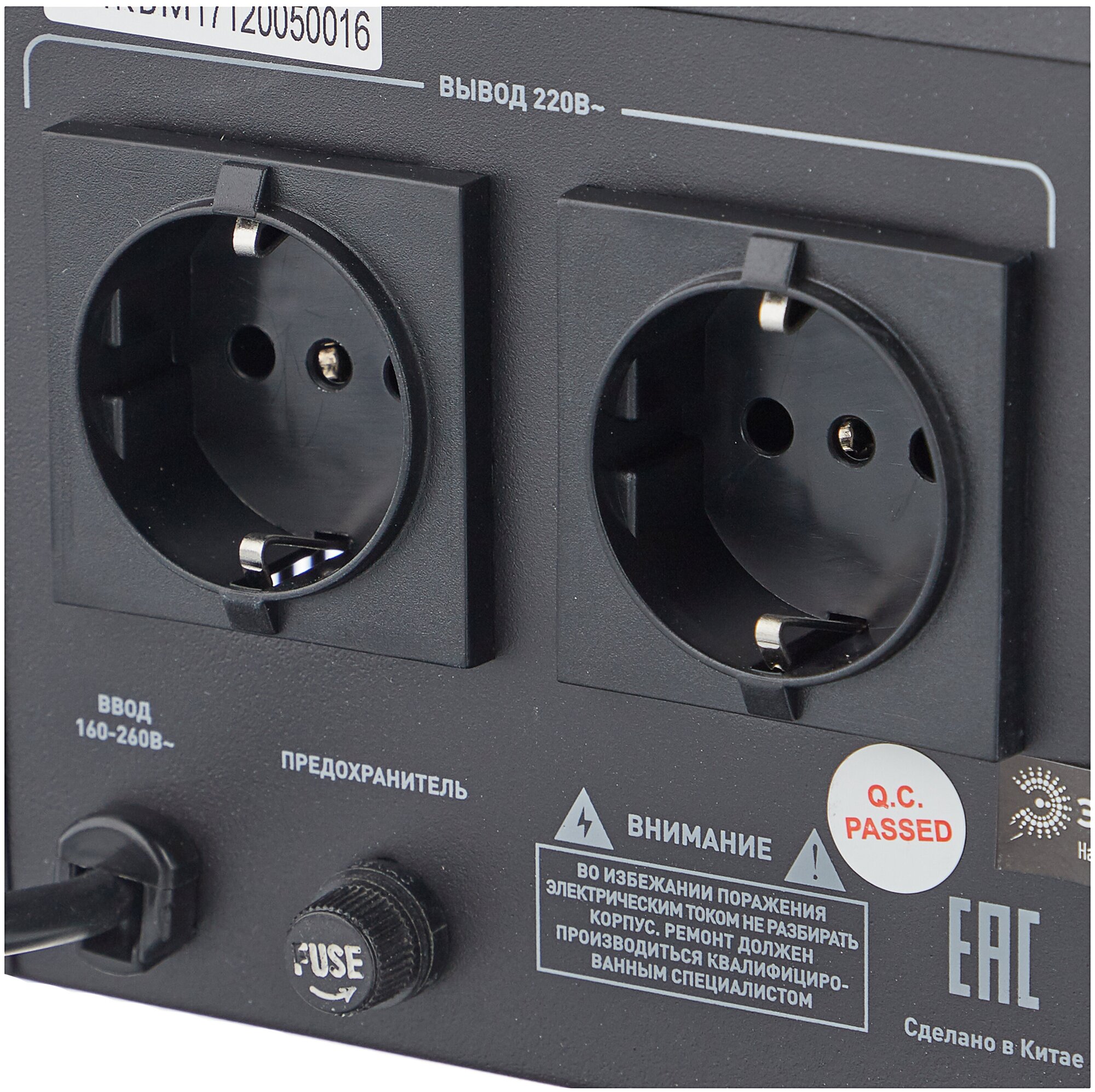 Min. phase output voltage: 202 V; Max. input working voltage: 260 V; Max. input frequency: 60Hz; min. input frequency: 50Hz; total number of output sockets: 2 pcs.; response time: 20ms