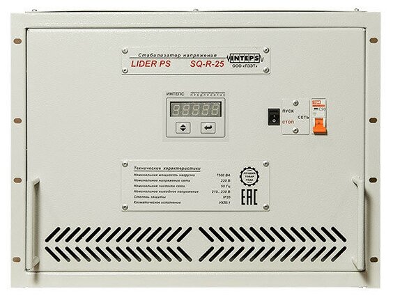 Type of input voltage: single-phase, type of stabilizer: electronic thyristor, placement: rack 19, min. input operating voltage: 160 V, max. input operating voltage: 280 V, error: 1.40%