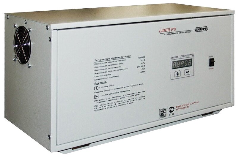 Input voltage type: single-phase, stabilizer type: electronic thyristor, location: universal, min. input operating voltage: 180 V, max. input operating voltage: 255 V, error: 0.90%, noise level: 40