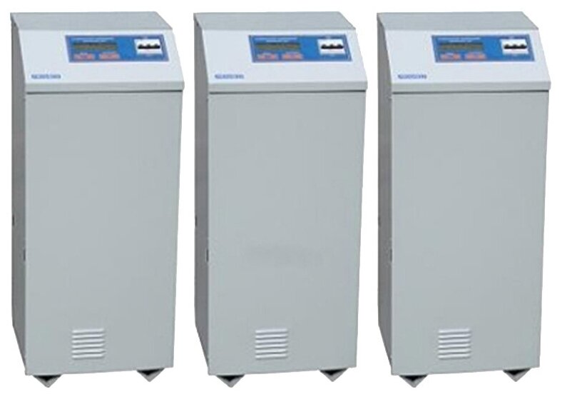 Type of input voltage: three-phase, type of stabilizer: electronic thyristor, location: floor, min. input operating voltage: 180 V, max. input operating voltage: 250 V, error: 2.50%