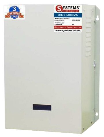 Input voltage type: single-phase, stabilizer type: electronic thyristor, location: universal, min. input operating voltage: 110 V, max. input operating voltage: 290 V, error: 5%