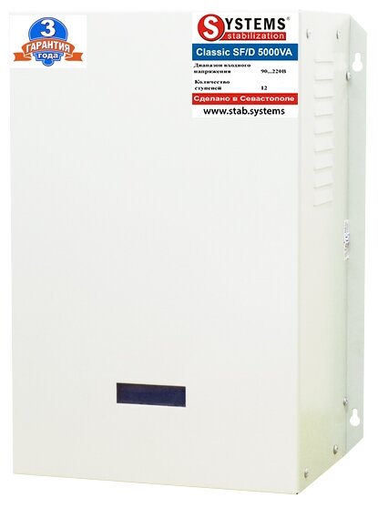 Input voltage type: single-phase, stabilizer type: electronic thyristor, location: universal, min. input operating voltage: 90 V, max. input operating voltage: 220 V, error: 5%
