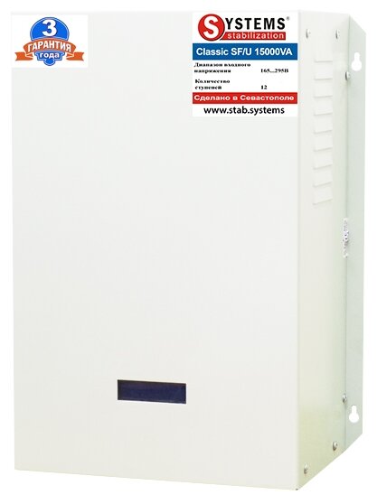 Description: Input voltage type: single-phase, stabilizer type: electronic thyristor, location: universal, min. input operating voltage: 160 V, max. input operating voltage: 290 V, error: 5%