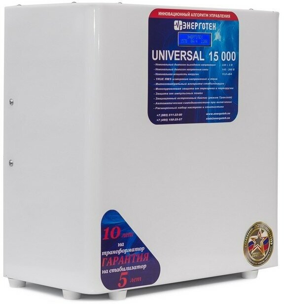 Input voltage type: single-phase, stabilizer type: relay, location: floor, min. input operating voltage: 180 V, max. input operating voltage: 264 V, output sockets with stabilization: 3 pcs., error