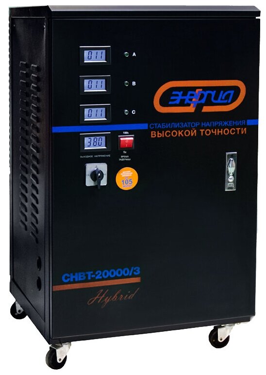 Input voltage type: three-phase, stabilizer type: hybrid, location: floor standing, min. input operating voltage: 144 V, max. input operating voltage: 256 V, error: 3%, noise level: 40 dB