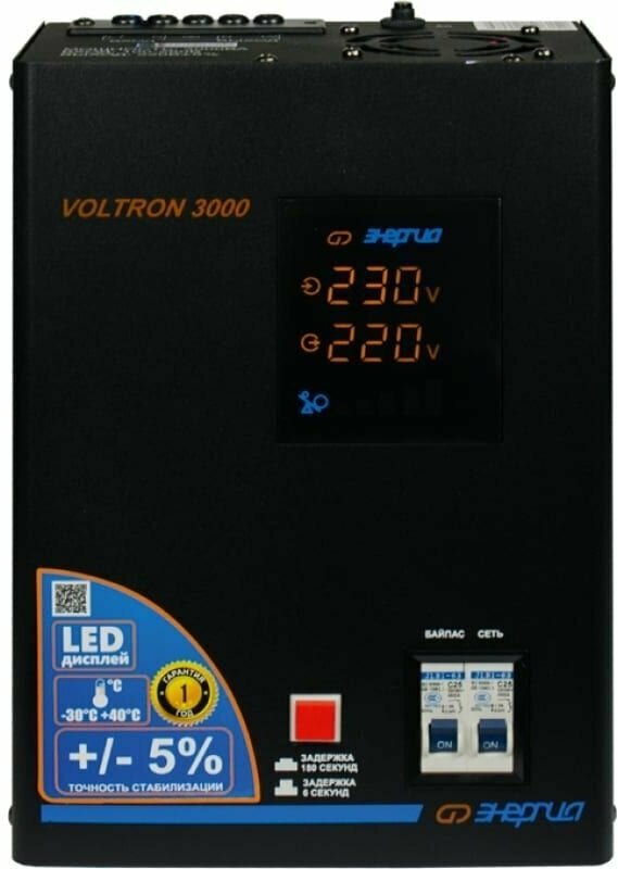 Input voltage type: single-phase, stabilizer type: relay, location: floor, min. input operating voltage: 180 V, max. input operating voltage: 264 V, output sockets with stabilization: 3 pcs., error