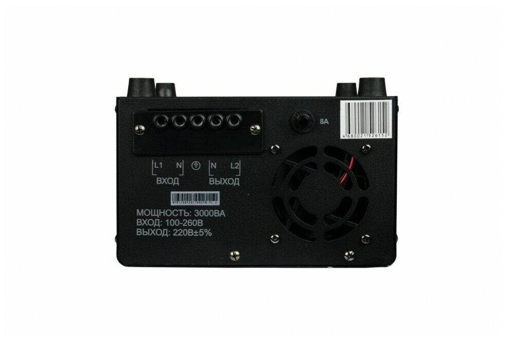Input voltage type: single-phase, stabilizer type: relay, placement: wall-mounted, universal, min. input operating voltage: 105 V, max. input operating voltage: 265 V, error: 5%