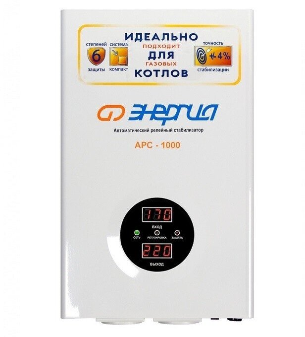 Input voltage type: single-phase, stabilizer type: relay, location: floor, min. input operating voltage: 180 V, max. input operating voltage: 264 V, output sockets with stabilization: 3 pcs., error