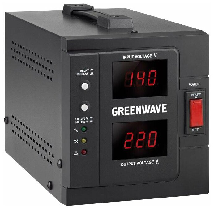 Input voltage type: single-phase, stabilizer type: relay, location: floor, min. input operating voltage: 180 V, max. input operating voltage: 264 V, output sockets with stabilization: 3 pcs., error