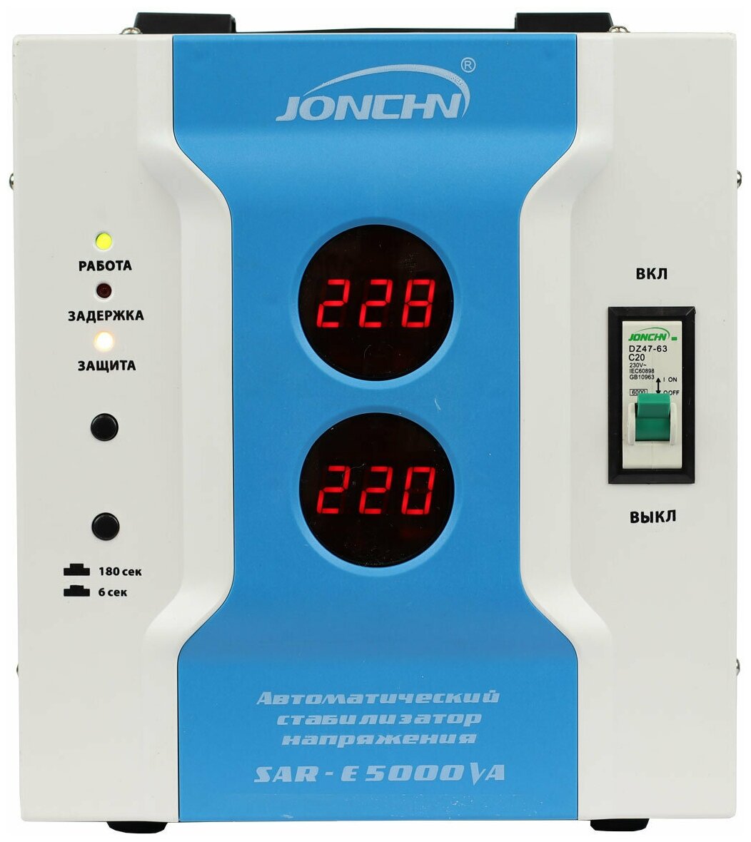 Input voltage type: single-phase, stabilizer type: relay, location: floor standing, desktop, min. input operating voltage: 130 V, max. input operating voltage: 260 V, error: 8%