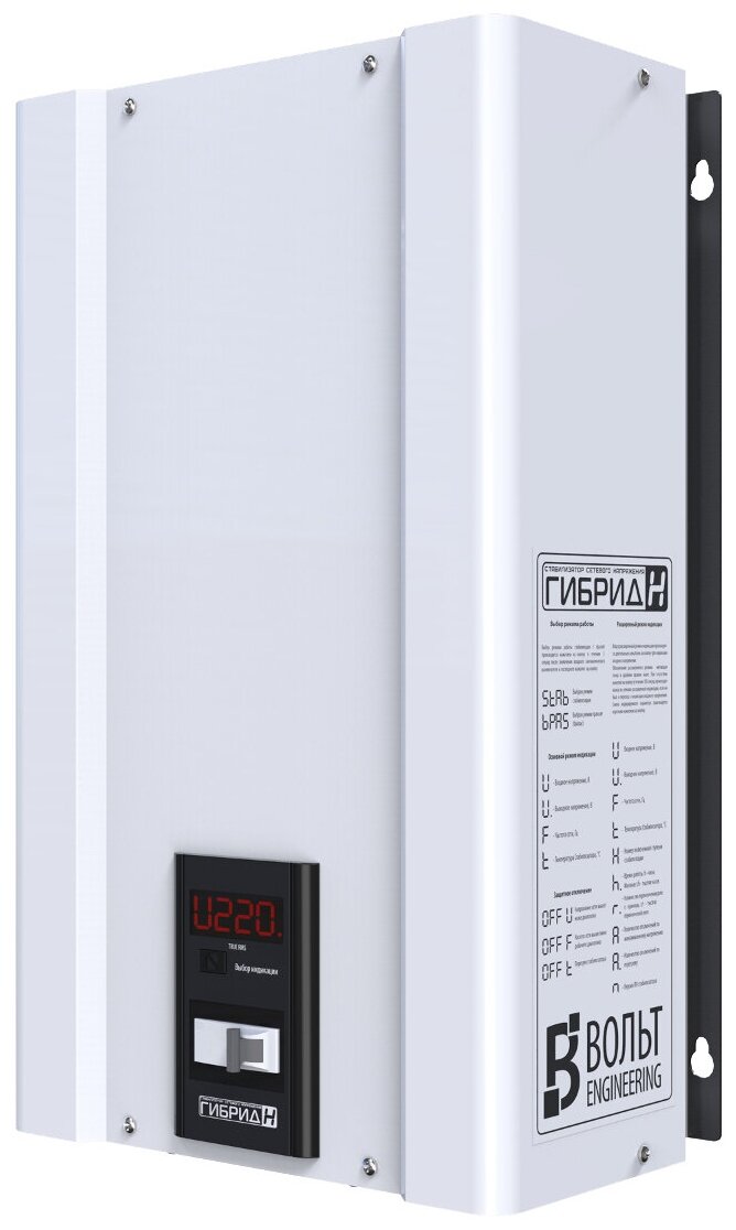 Input voltage type: single-phase, stabilizer type: hybrid, placement: wall-mounted, min. input operating voltage: 135 V, max. input operating voltage: 315 V, error: 7.50%
