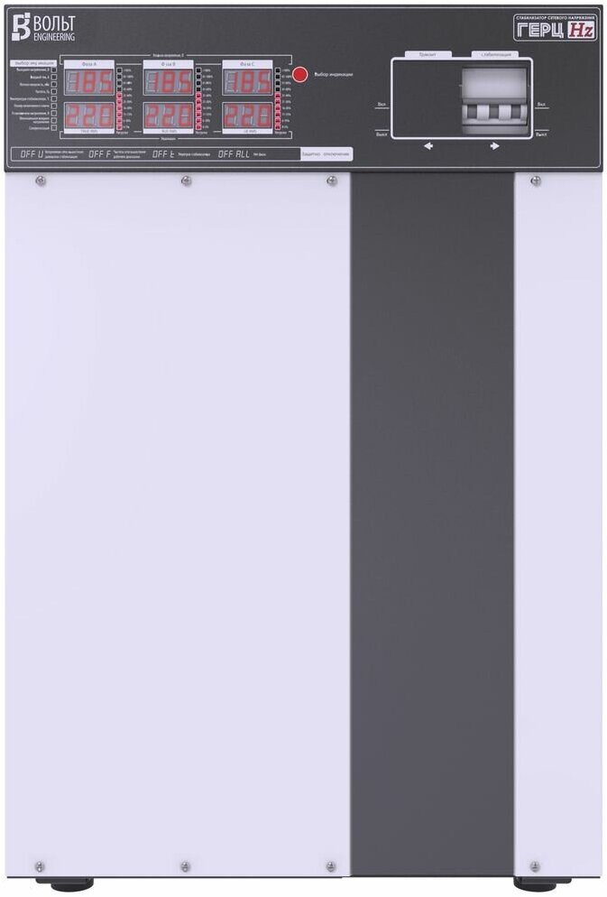 Type of input voltage: three-phase, type of stabilizer: electronic thyristor, location: floor, min. input operating voltage: 150 V, max. input operating voltage: 260 V, error: 2.50%
