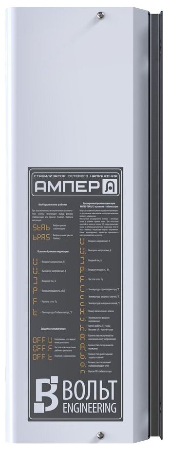 Input voltage type: single-phase, stabilizer type: electronic thyristor, location: wall-mounted, min. input operating voltage: 145 V, max. input operating voltage: 275 V, error: 3.50%