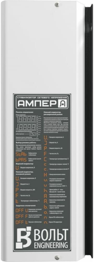 Input voltage type: single-phase, stabilizer type: electronic triac, location: wall-mounted, min. input operating voltage: 100 V, error: 3.50%