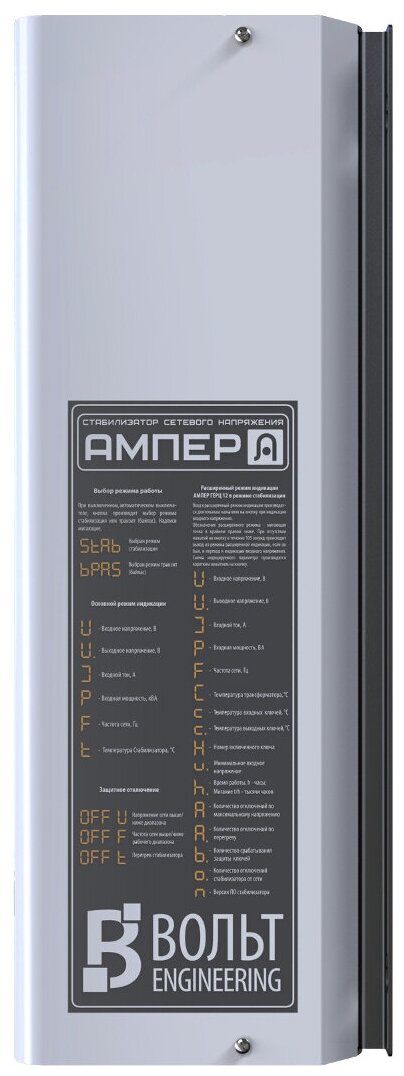 Input voltage type: single-phase, stabilizer type: electronic triac, location: wall-mounted, min. input operating voltage: 120V, max. input operating voltage: 275 V, error: 3.50%