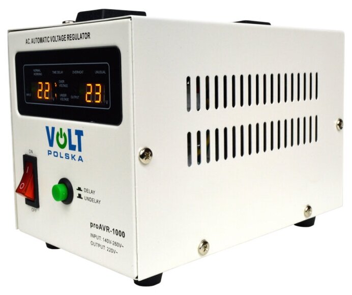 Input voltage type: single-phase, stabilizer type: relay, location: floor, min. input operating voltage: 180 V, max. input operating voltage: 264 V, output sockets with stabilization: 3 pcs., error
