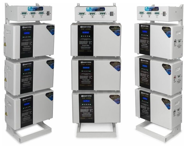 Input voltage type: single-phase, stabilizer type: electronic thyristor, location: floor, wall, error: 3%