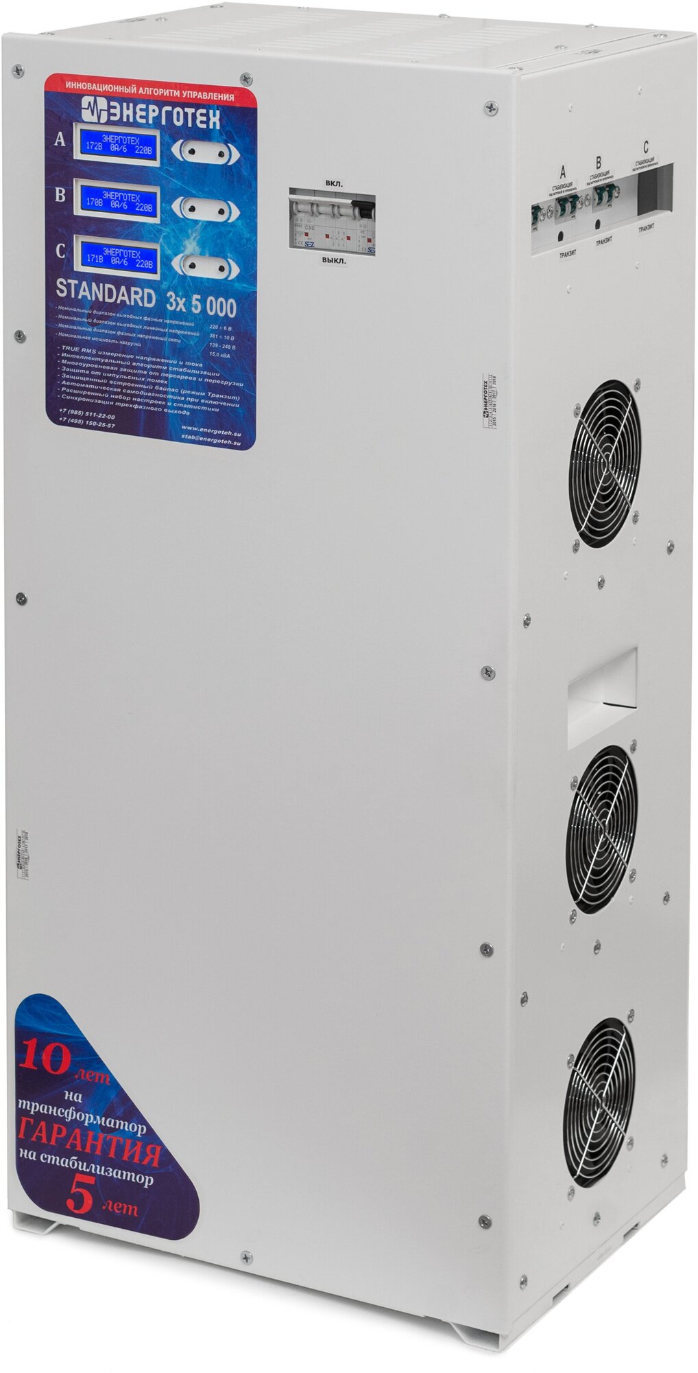 Input voltage type: three-phase, stabilizer type: electronic thyristor, location: universal, min. input operating voltage: 176 V, max. input operating voltage: 286 V, error: 3%