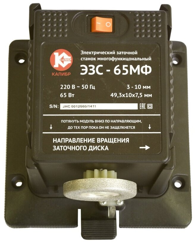 Grinding wheel dimensions - 49.3x7.5x10 mm; diameter of sharpened drills - 3-10 mm; width of sharpened chisels / blades - 6-51 mm; rated voltage/frequency - 220 V/50 Hz; length of power cord with plug, not less than - 2 m