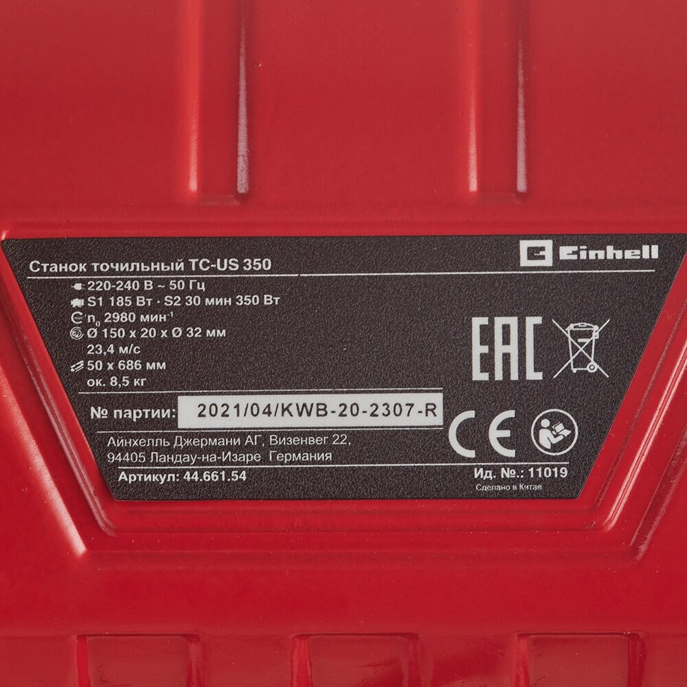 Description: Motor power: 350 W, tool type: universal, seat diameter: 32 mm, grinding wheel diameter: 150 mm, wheel thickness: 20 mm, maximum speed: 2980 rpm, sanding belt