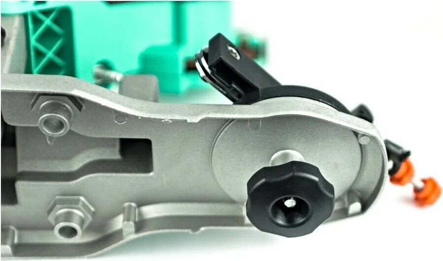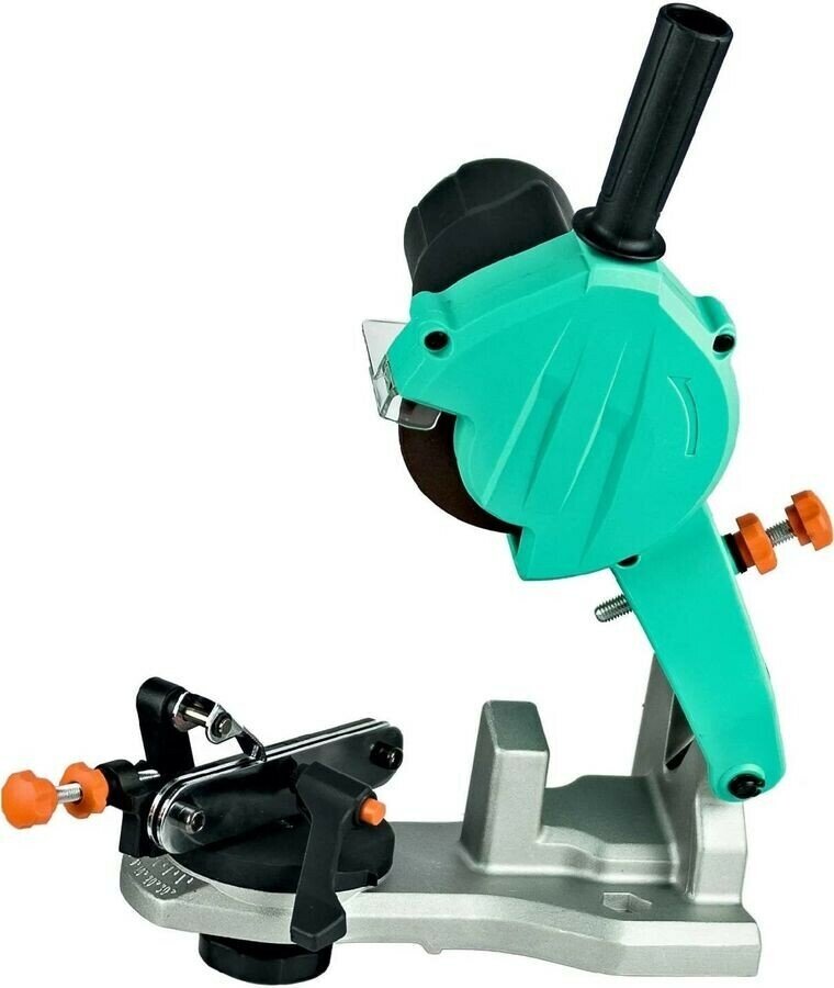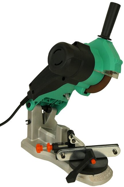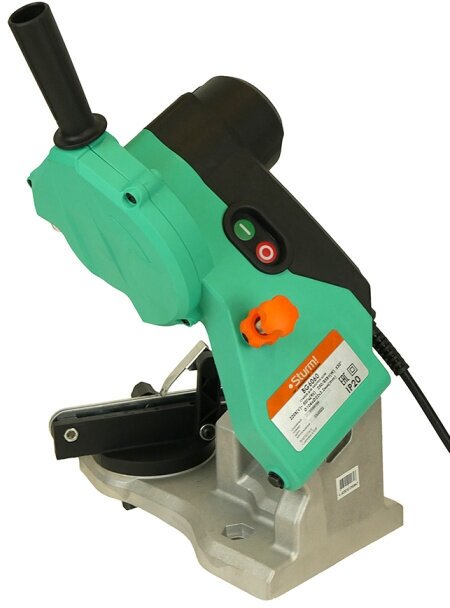 Sturdy cast metal base optimally shaped and mounted on the desktop provides ease of use. The built-in illumination of the working area with a bright LED illuminates the sharpening unit and allows the beam to