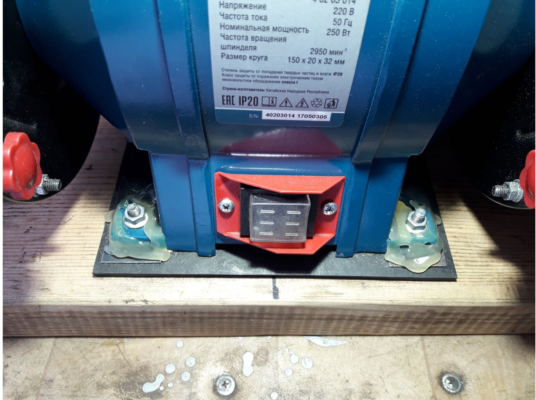 Motor power: 250 W, bore diameter: 32 mm, grinding wheel diameter: 150 mm, wheel thickness: 20 mm, maximum speed: 2950 rpm