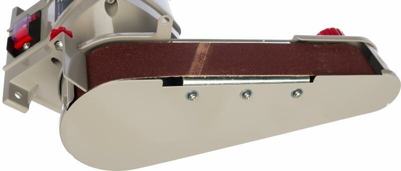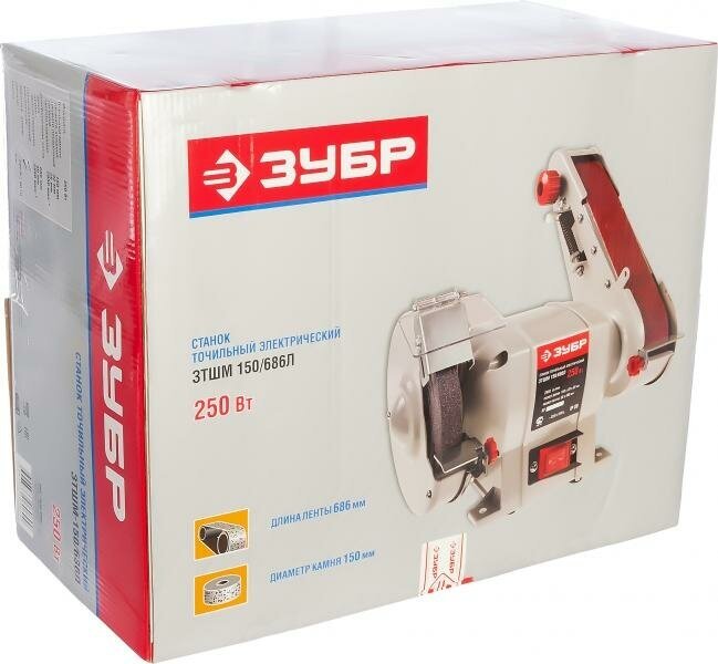 Complete set: grinding machine - 1 pc., grinding stone installed - 1 pc., grinding belt - 2 pcs., protective screen - 1 set, stop - 1 set, documentation; tape length - 686 mm, tape width - 50 mm, weight - 7.2 kg