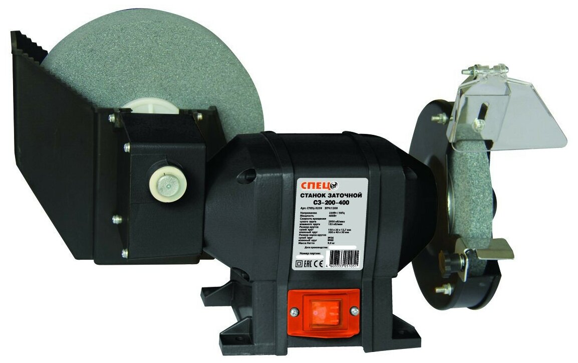 Motor power: 400 W, tool type: tools, seat diameter: 20 mm, grinding wheel diameter: 200 mm, wheel thickness: 12.70 mm, maximum speed: 2950 rpm